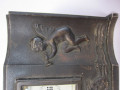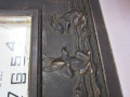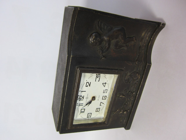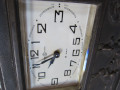 機械は八日巻きビーで、文字板は正角ではなく横長で白色、ガラスは面取りガラスです。 右側にラッパを吹く子供の天使、文字板の下方には三羽のウサギがいます。 ウサギは中央は正面を向き、左右は向き合っています。 話し合いをしているようにも、真ん中が行司役で相撲をとっているか踊りを踊っているようにも見えます。