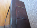 昭和30年頃 | 全高 38.3cm、巾26.5cm、奥行12.5cm | 一週間巻き、直進式中三針半時間打機械、渦鈴戻打式 |