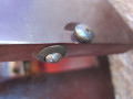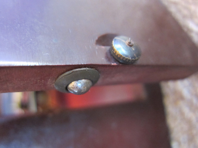 振子室の扉の固定は掛時計の金具には珍しく内部にスプリングを仕込んだ金属の玉で固定しています。 よって振子室の開け閉めにつまみを回す操作が不要です。 開けるときは引っ張るだけ、閉めるときは扉を押すだけ、ちょっとしたことですが気の利いた設計です。 でも知らないとツマミを回そうとしてしまうかも。