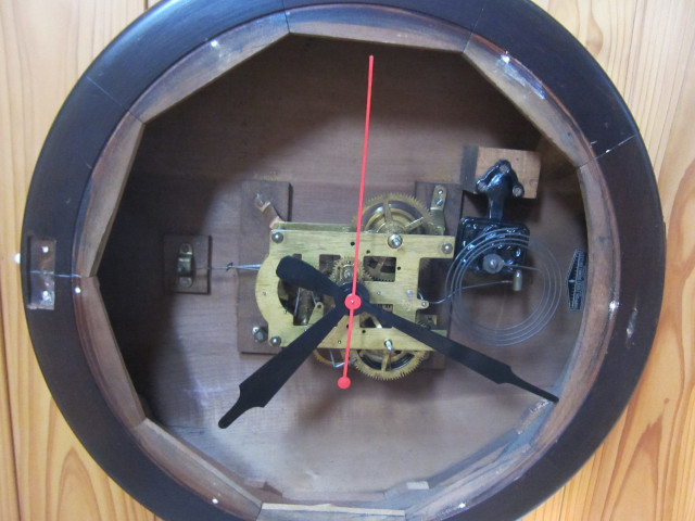 一週間巻き中三針、半時間打機械、木地塗ケース