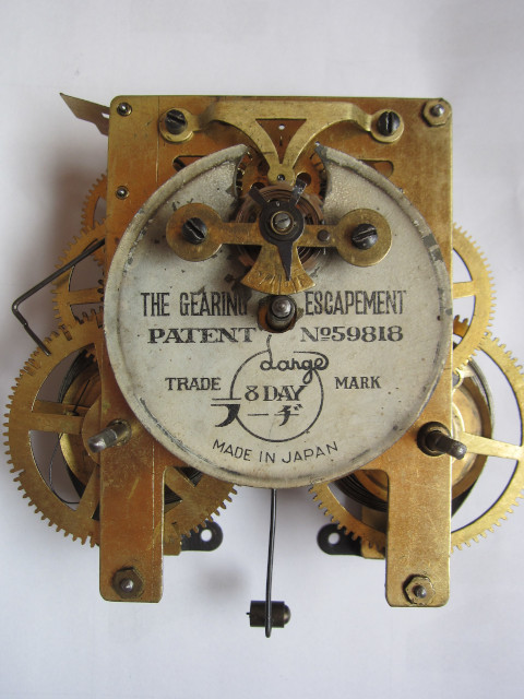 まさかこの時計の記事を書く日が来るとは思っていませんでした。 主に英国製の懐中時計に採用されていたデュプレックス脱進機を模した曲げても止まらない「THE GEARING ESCAPEMENT」を搭載する名古屋製の柱時計です。 当時の時計屋からは、「ラーヂ修理お断り」「ガンギ、天府等々の重要な部品の設計並びに仕上がりがが悪い」とされ嫌われ者のレッテルを貼られた時計でしたので 素人の私としては手を出しにくく入手を避けてきました。