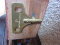 振子室の扉の固定は掛時計の金具には珍しく内部にスプリングを仕込んだ金属の玉で固定しています。 よって振子室の開け閉めにつまみを回す操作が不要です。 開けるときは引っ張るだけ、閉めるときは扉を押すだけ、ちょっとしたことですが気の利いた設計です。 でも知らないとツマミを回そうとしてしまうかも。